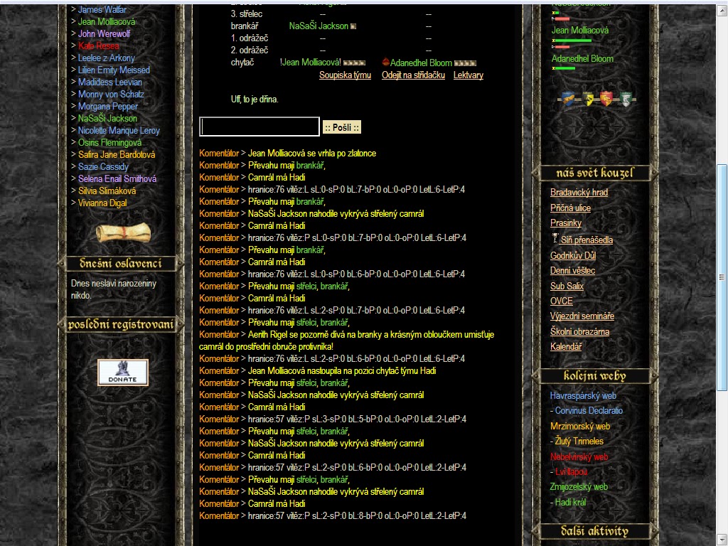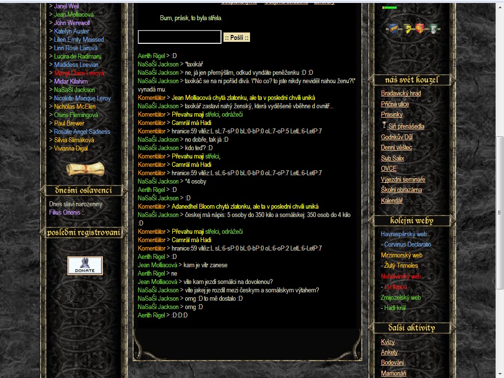 …Zezačátku byla nuda přímo strašná, první hodinu se jen a jen klikalo. Pak ale Aerith Rigelněco napadlo. „Nebudeme si aspoň povídat vtipy? Tady je ticho jako v hrobě.“ No, tak jsme začali…