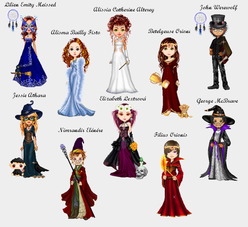 Alissia Catherine Alterey nás ovšem také překvapila. Úchvatné bílé šaty s rukavičkami, perfektní naušnice... co víc si přát? Hůlka v ruce vzhledu neuškodí, takhle to vypadá, když je člověk připraven na vše možné... Třešničkou na dortu se stal její účes, který nám napovídá, že Alissia je extravagance sama. Betelgeuse Orionis a Filius Orionisnikoho nepřekvapili svým nebelvírským vzhledem. Slečna Bete ukázala pohárem, korunkou a lvem, že je pravá ředitelka Nebelvíru, taktéž se obléknul i pan Filius. Ten zase využil nového pánského modelu - Róbu ohnivého mága. Oba Orionisovi k sobě hezky ladili - domluvili si to nebo je to jen podobnost čistě náhodná? Ať je to tak nebo jinak, stejně jim to sluší. To byly modely krásné, skvělé a ještě nevím co... Teď ale přichází na ředu modely normální. Modely, které jsou sice nepřehlédnutelné, avšak nedonutí většinou lidi závidět. :D